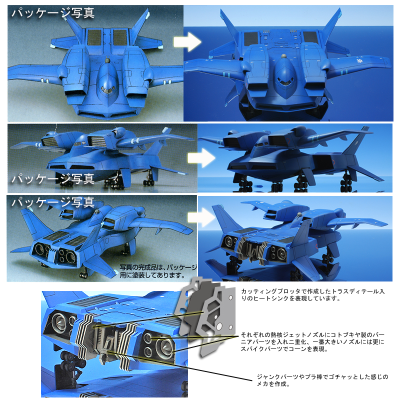 後部にも隙間が出来るので、これまたカッティングプロッタで切り出したもので、ヒートシンク風のパーツ、その間にジャンクパーツとプラ棒等でゴチャゴチャっとメカニカルな感じにしています。